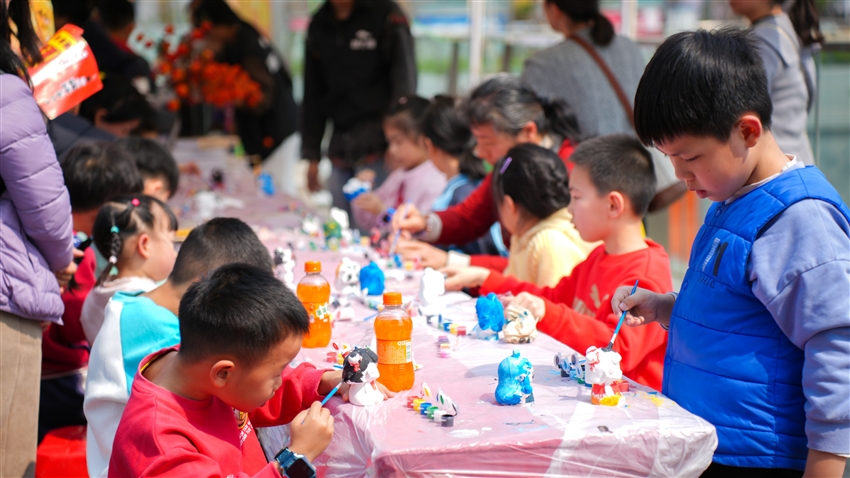 在創(chuàng)意手作區(qū),也吸引了眾多小朋友的目光。在這里大家可以用黏土塑造哪吒,用彩筆描繪敖丙,用糖畫勾勒太乙真人。還可以體驗(yàn)漆扇、香囊等非遺手作。各種創(chuàng)意手作活動(dòng)讓大小朋友們感受到了民俗文化與哪吒元素的奇妙融合,玩得不亦樂(lè)乎!
