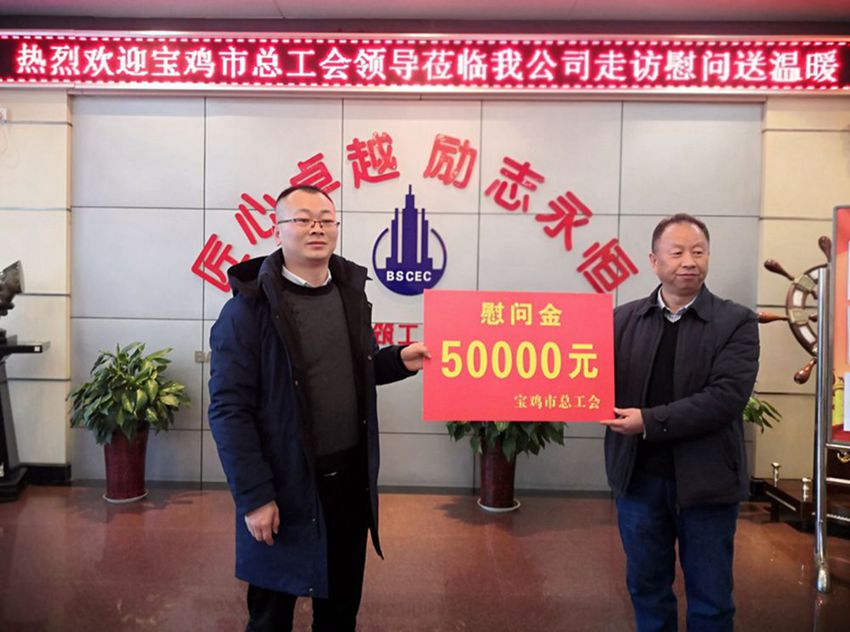 2021年1月12日下午,由寶雞市總工會黨組副書記、常務副主席趙會祥帶隊的市總工會慰問組來到我公司開展2021年“雙節(jié)”送溫暖活動,為公司送來5萬元慰問金。
