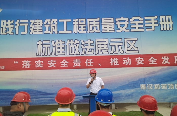 秦漢和苑項目經(jīng)理申宏亮對項目安全管理作了經(jīng)驗交流并對安全生產(chǎn)做出了鄭重承諾。他提到,現(xiàn)場安全生產(chǎn)不光要明確目標(biāo)、突出重點,更要樹立大局意識,認(rèn)清形勢、狠抓落實。只有把安全生產(chǎn)工作做細(xì)做好、落到實處,才能創(chuàng)造一個安全、有序、和諧的生產(chǎn)環(huán)境。