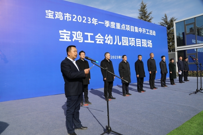 1月28日,寶雞市2023年一季度重點項目集中開工活動在集團(tuán)公司承建的寶雞市總工會幼兒園項目現(xiàn)場舉行,市委書記楊廣亭下達(dá)開工令,市長王勇、市人大常委會主任景耀平、市政協(xié)主席劉榮賢、市委副書記段小龍參加活動。市委常委、常務(wù)副市長賈珉亮主持開工活動。市人大常委會副主任、市總工會主席陳小平介紹項目情況。